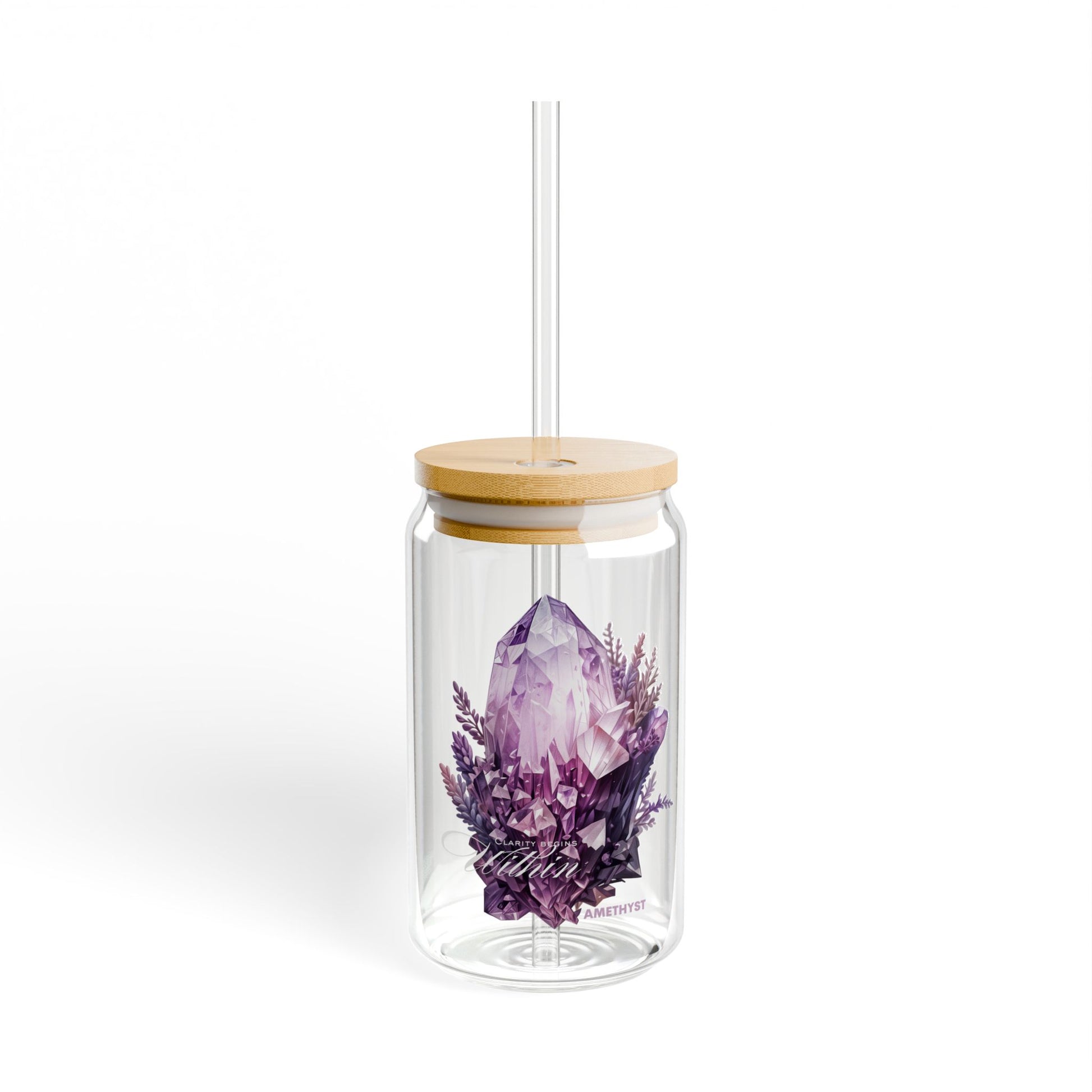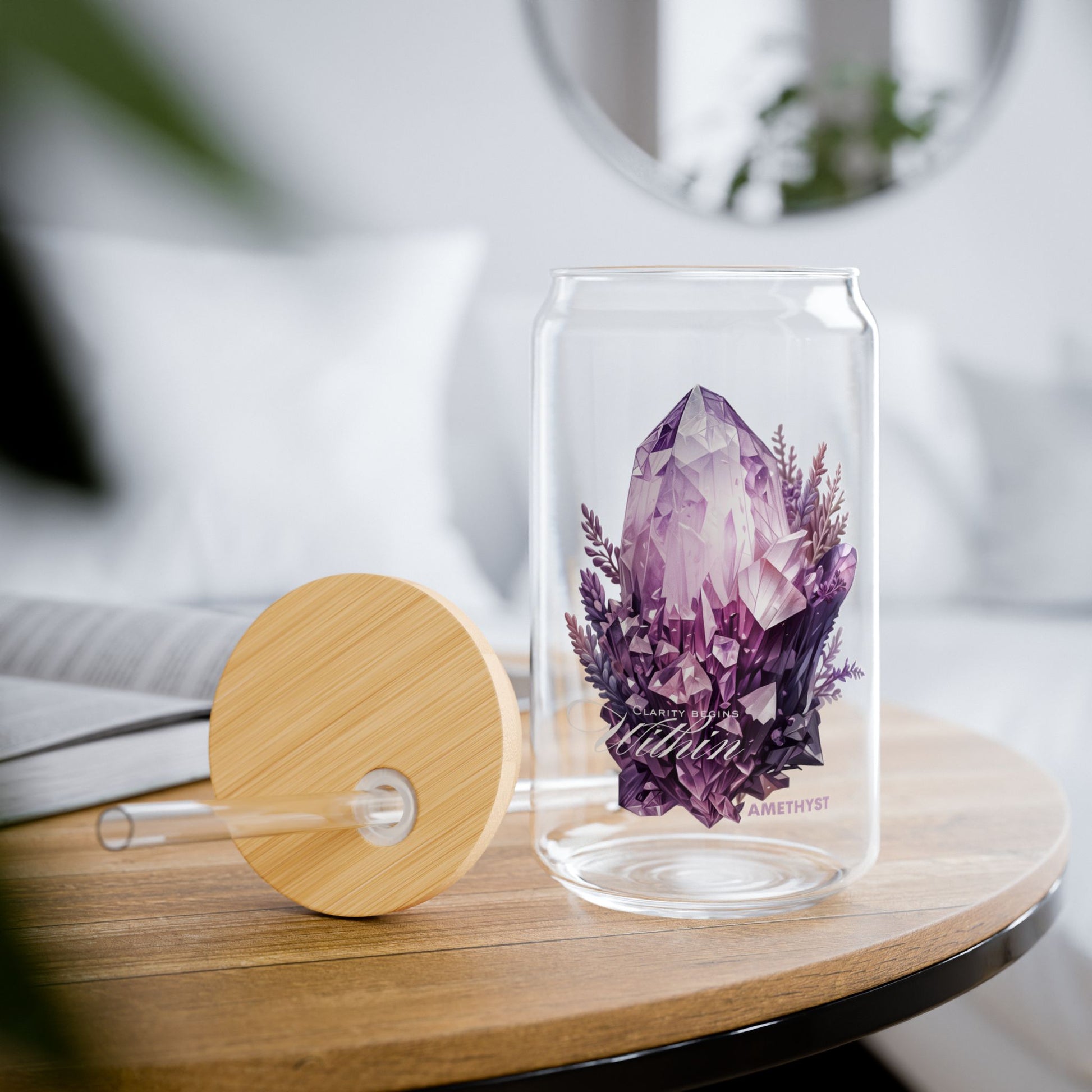 Infused with the calm essence of Amethyst, this 16oz glass tumbler is a daily reminder that clarity begins within. Featuring a soft, luminous design inspired by lavender tones and the tranquil energy of Amethyst, it invites you to slow down and savor each sip with intention.